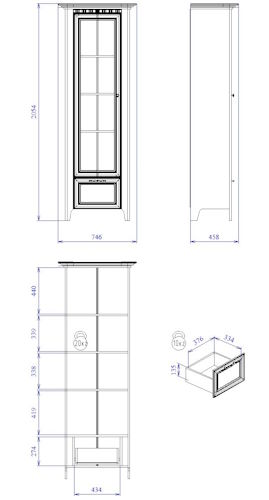 Фасад пенала Клер украшен стеклянной вставкой.